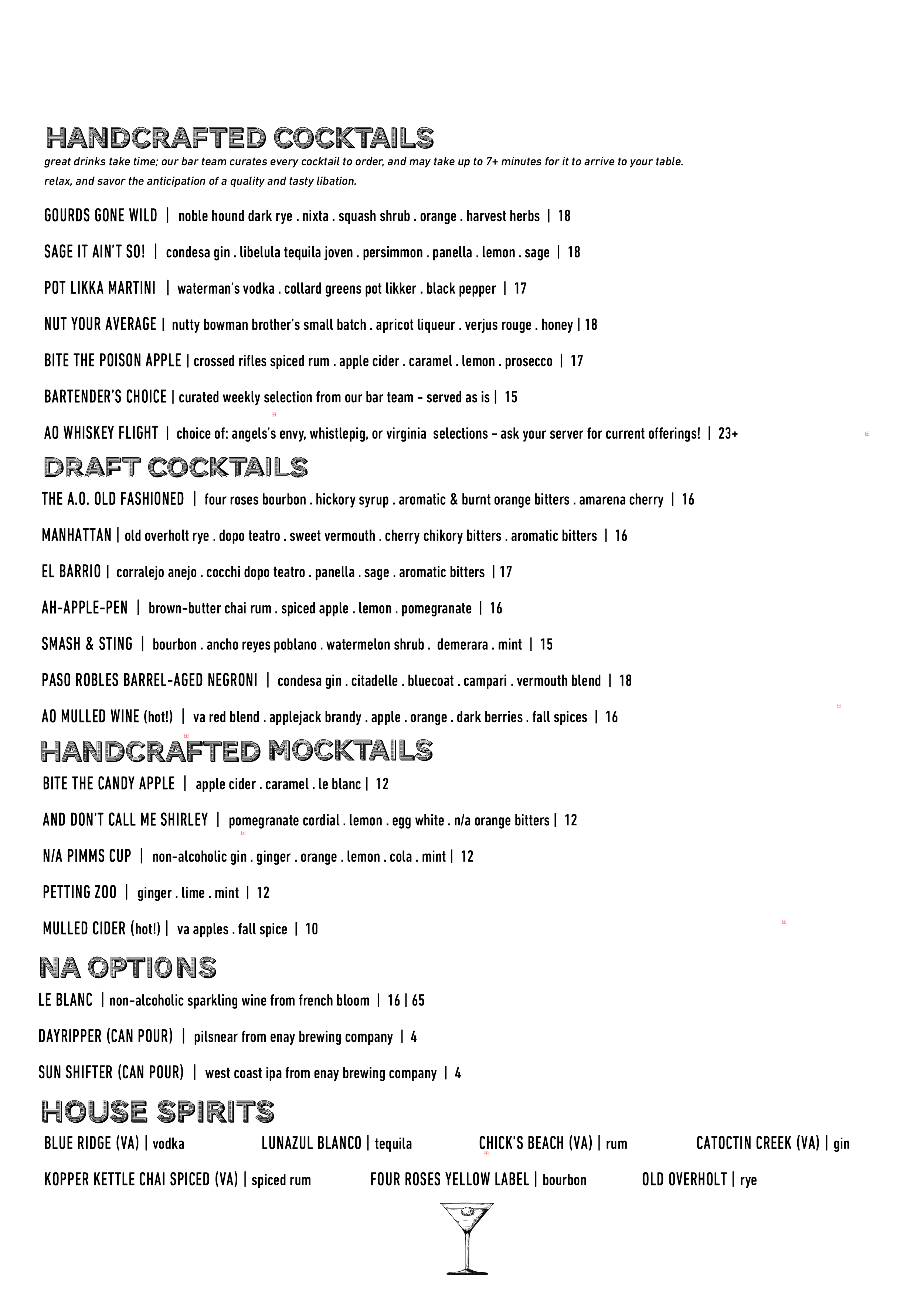Please be advised that our menus are subject to change due to the available ingredients from our local farming partners.